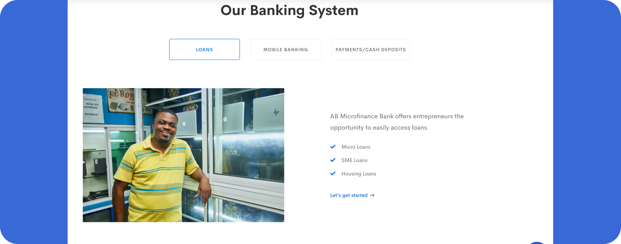 AB Microfinance Bank is a Central Bank–licensed institution operating across more than 30 branches in Nigeria. The bank provides loans, savings products, POS services, and financial support to individuals and MSMEs nationwide.